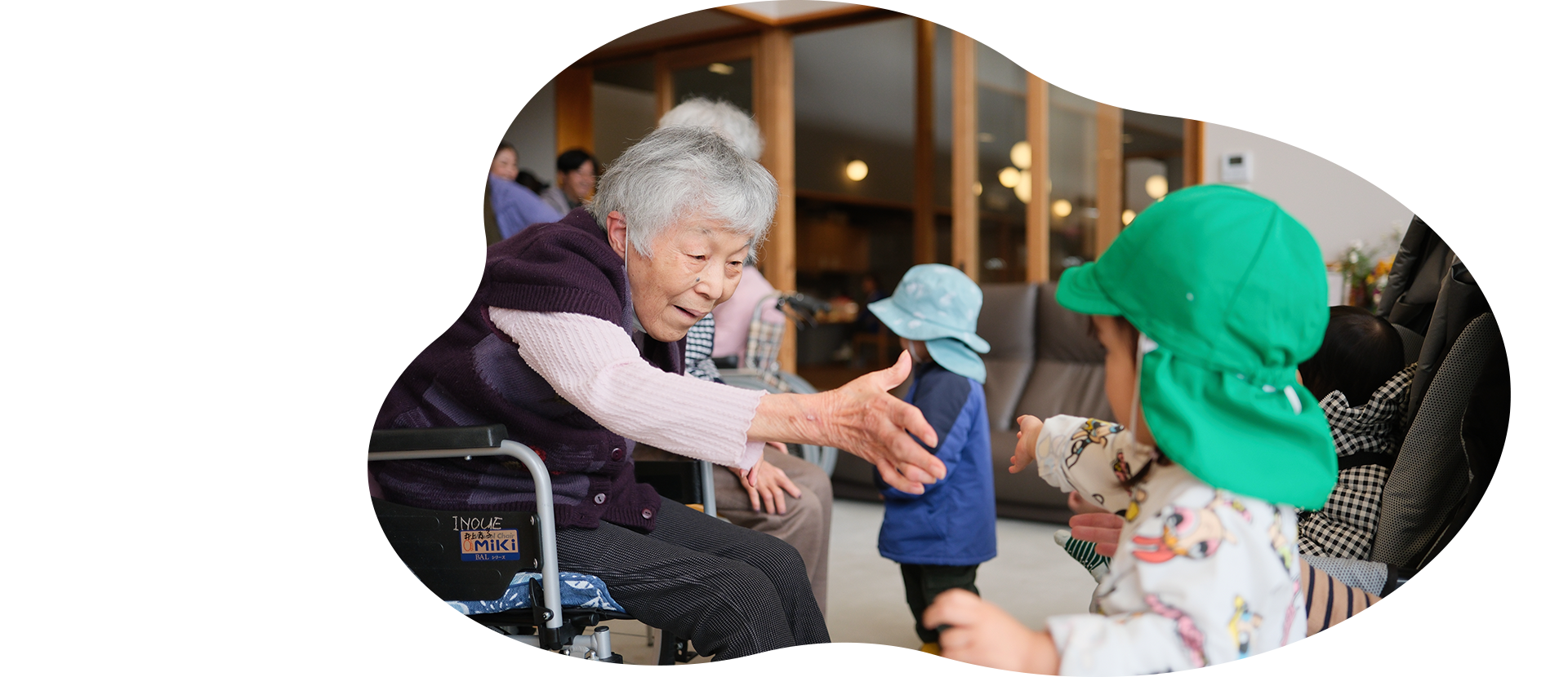 「世代間交流」運営元である介護施設(隣接)との日常的な交流は、当園だけの特別な体験です。おじいちゃん・おばあちゃんとの温かいふれあいが、子どもたちの「優しさ」や「思いやり」を自然に育みます。
