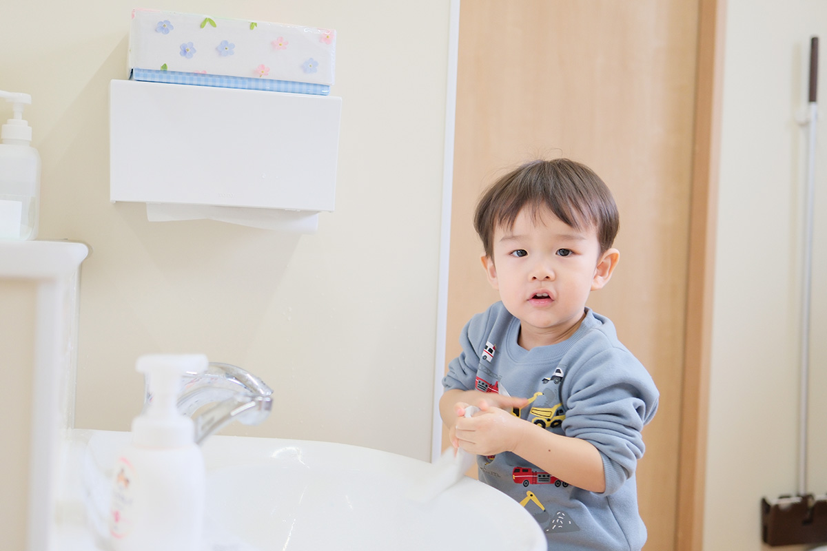 「おはようございます」元気な挨拶で1日が始まります。視診や検温など、朝の健康チェックも丁寧に行います。